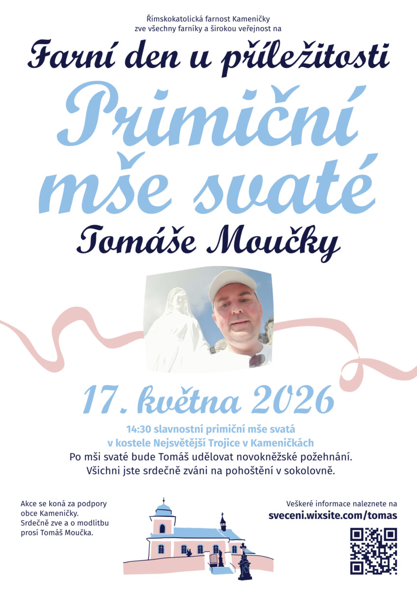 Srdečně zveme všechny farníky i širokou veřejnost na farní den u příležitosti primiční mše svaté Tomáše Moučky, který se uskuteční
