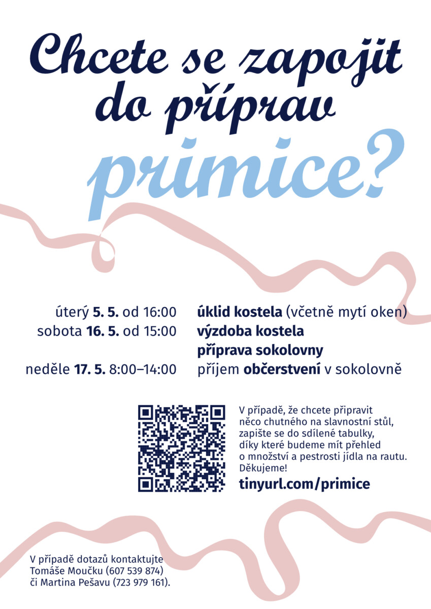 Blíží se slavnost primice a rádi bychom pozvali všechny, kteří chtějí přiložit ruku k dílu a pomoci s přípravami.