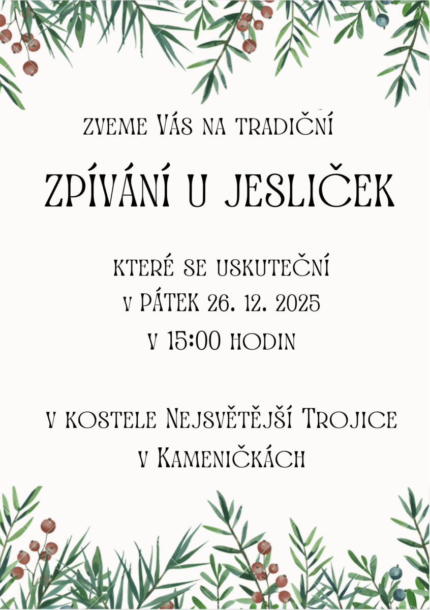 Srdečně zveme všechny farníky i návštěvníky na tradiční zpívání u jesliček, které se uskuteční
